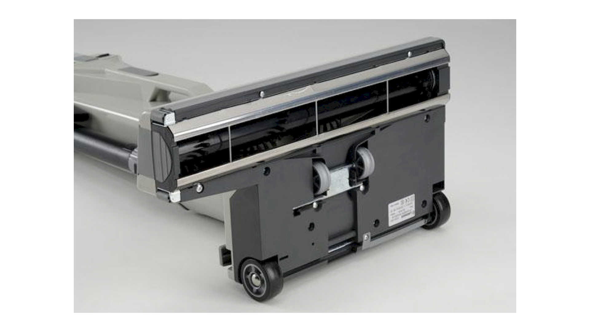 Il rullo bilanciato dinamicamente e supporti in metallo con cuscinetti a sfere si sostituisce in un attimo e senza utensili. La macchina lavora su 4 ruote mentre lateralmente ci sono 2 cilindretti per facilitare lo scorrimento a filo muro. E’ dotata di un controllo elettronico per soft start, indicazione del sovraccarico per la corretta regolazione dell’altezza e blocco motore.